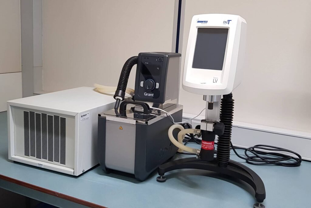 A Brookfield Rotary Viscometer is a type of scientific instrument that is used to measure the viscosity of fluids. The principle behind its operation is that the torque required to rotate a spindle inside a fluid is proportional to the fluid’s viscosity.